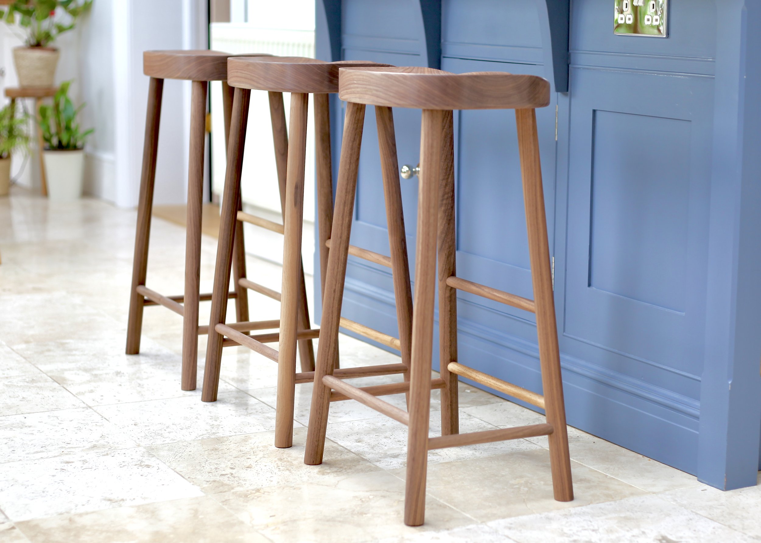 Kitchen island stools A collection of solid hardwood kitchen stools, all designed and made by us. Classic Stool in Oak or Walnut from £179.00 Classic Stool in Character Oak from £199.00 Farmhouse Stool in Oak from £219.00 Farmhouse Stool in Character Oak from £249.00 Sold Out Farmhouse Stool in Walnut from £329.00 Townhouse Stool in Oak from £329.00 Manor House Stool in Oak from £279.00 Manor House Chair in Oak £299.00 Round Stool in Oak from £159.00 Oak River Stool Cobolt Blue £480.00 Low Round Stool in Oak £149.00