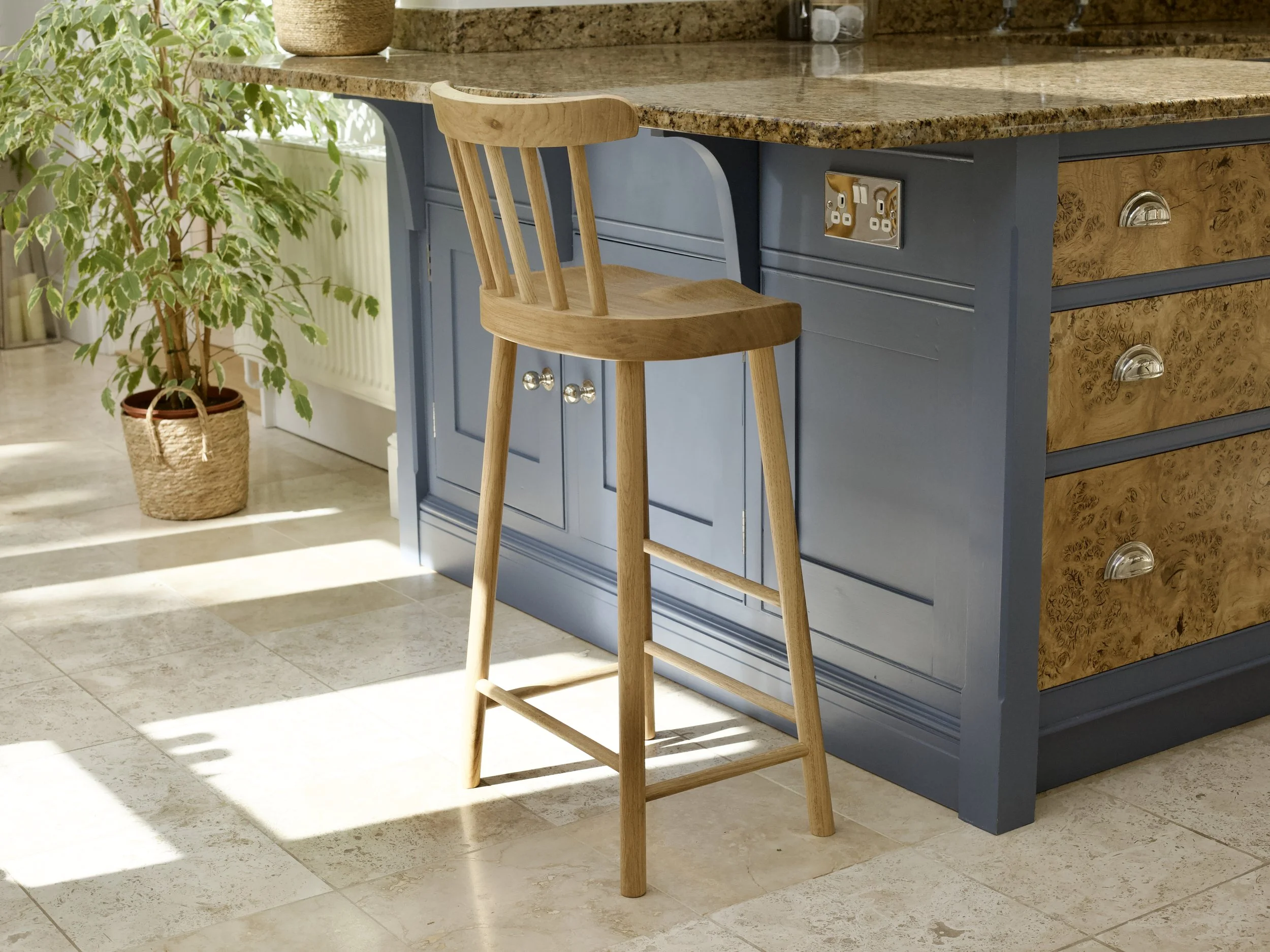 Kitchen island stools A collection of solid hardwood kitchen stools, all designed and made by us. Classic Stool in Oak or Walnut from £174.00 Classic Stool in Character Oak from £194.00 Farmhouse Stool in Oak from £219.00 Farmhouse Stool in Character Oak from £249.00 Sold Out Farmhouse Stool in Walnut from £329.00 Townhouse Stool in Oak from £329.00 Manor House Stool in Oak from £279.00 Round Stool in Oak from £159.00 Oak River Stool Cobolt Blue £480.00 Low Round Stool in Oak £149.00